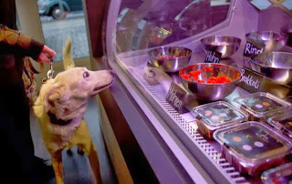 Οι τετράποδοι επισκέπτες στον κατάλογο μπορούν να βρουν και να γευτούν κρεατικά, ψάρια και βιολογικά λαχανικά, όπως και χειροποίητες κροκέτες.