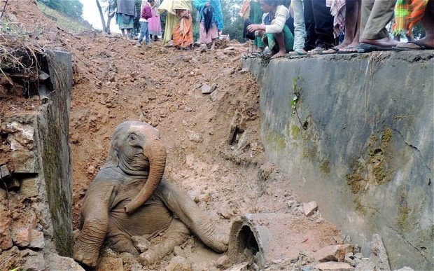Ένας νεαρός ελέφαντας διασώθηκε μετά από γλίστρημα σε ένα σιδηροδρομικό ανάχωμα με αποτέλεσμα να έχει παγιδευτεί σε συνεπτυγμένο έδαφος.
